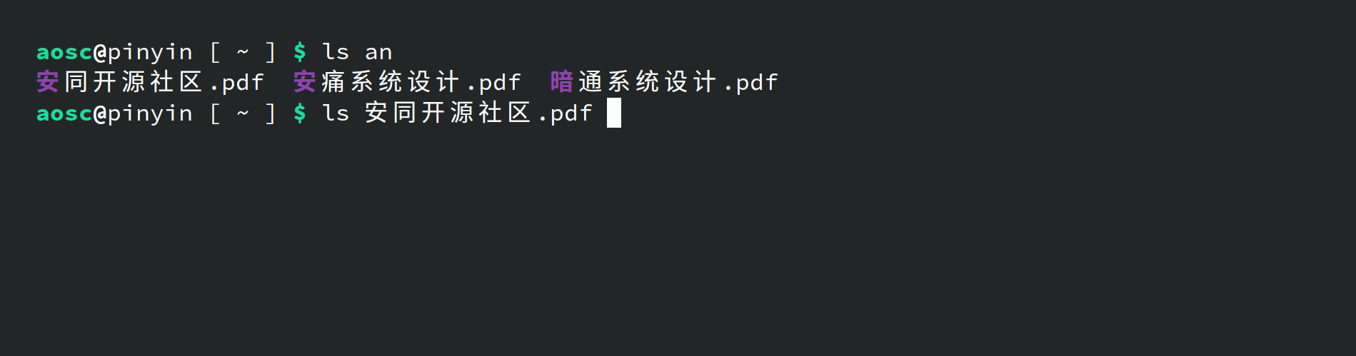 在使用终端的过程中,您是否也在处理中文路径时需要输入法切换频繁,遭致一顿手忙脚乱?又是否在 TTY 下发现自己根本无法打开或切换到带有中文的路径中?终端中的复杂文字输入(尤其是中文)一直是个难题。